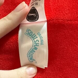 Adorable Squishmallows plush. Features red and white colors. Soft and cuddly design. no budlescsinxe so big