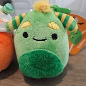 -Set of two mini Clip on Squishmallows - Lester the Pumpkin and Callum the monster