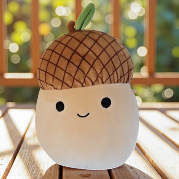 This rare Squishmallow is a must-have for any collector! Introducing Mac the Acorn, a 7.5 / 8 inch (look at pictures for exact sizing) plush toy from the popular Squishmallows brand. With its brown color and adorable acorn design, this stuffed animal is sure to bring joy to both kids and adults alike.