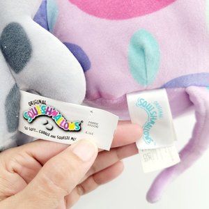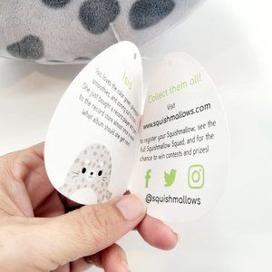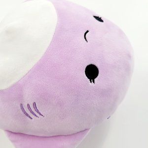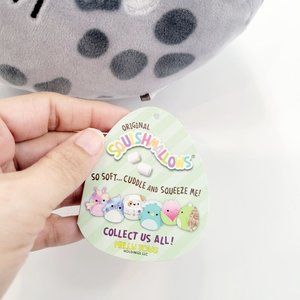 This lot of 2 Squishmallows follows are both Ocean Animals plush or stuffed animals, and includes: 1 gray and white, Isis the Spotted Seal with a white belly, fins, a tail, and an embroidered face (This plush is also brand new with tags.); and 1 purple Aziza the Stingray plush with a white belly, embroidered face, gills on each side, fins, and a tail.