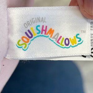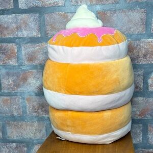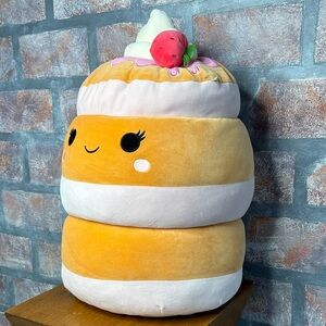 Adorable dessert-themed Squishmallows plush. Features orange and pink layers with a cute strawberry on top. Soft and cuddly.