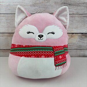 Squishmallows Rhiannon Pink Fox Wearing Christmas Scarf 2022