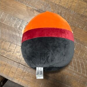 This adorable Squishmallows stuffed animal showcases a vibrant mix of orange and black colors. Its round, squishable form is perfect for cuddling or displaying as a decorative piece. With its cute and simplified design, it's a delightful addition to any plush collection.
