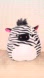 Adorable zebra plush toy with black and white stripes. Features pink accents on ears and eyes.