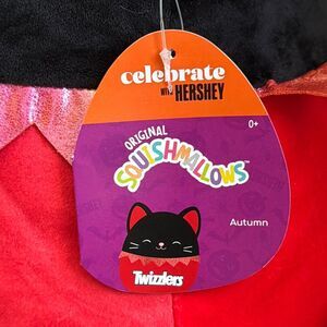 Squishmallows Autumn 12” cat plush in black and red. NWT