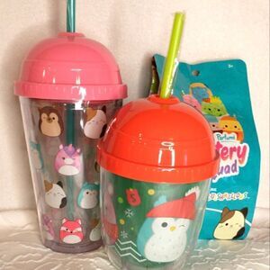 Squishmallows Mystery Bag and Two tumblers. Both Tumblers are the plastic type. One is 13oz and the other is 16oz. The smaller is winter themed. New and in original packaging. Mystery Bag is still sealed. No issues. Smoke free/Dog friendly home.