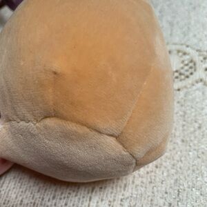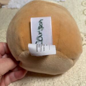 This adorable stuffed toy features a smiling cinnamon roll design in tan and cream colors. Perfect for kids who love cute and cuddly toys.