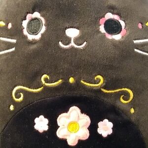 Squshmallows Plush Cat Toy with Floral Accents - Black