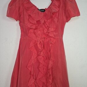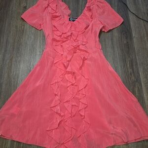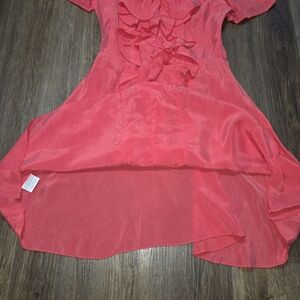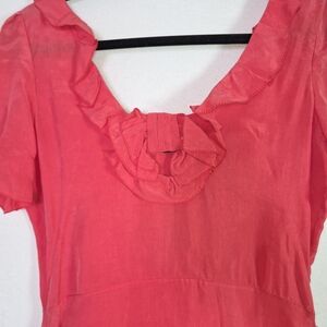 Sretsis by Pim Sukhahuta Ruffle Front Silk Dress Sz US 8 Coral Red Short Sleeve