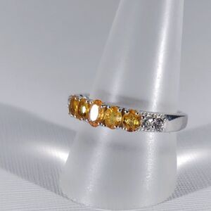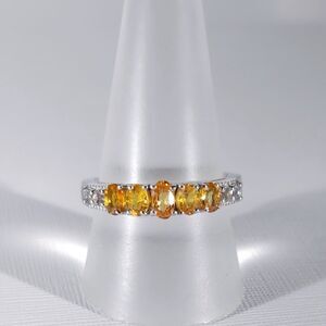 The middle yellow sapphire is 5x3 mm oval and the other four sapphires are 4x3 mm oval.
