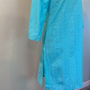 Srishti Aqua Blue Embroidered 100% Cotton Indian Kurta Women’s Small 3/4 Sleeve