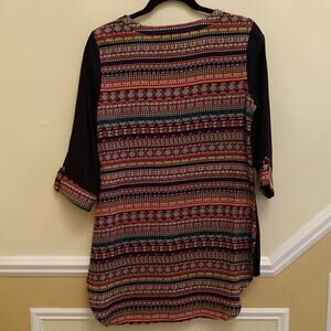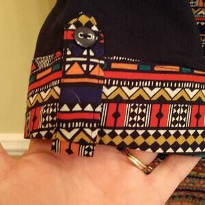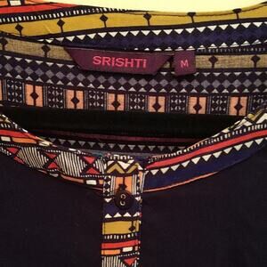 From India, navy tunic with colorful pocket, placket, cuffs and back.
