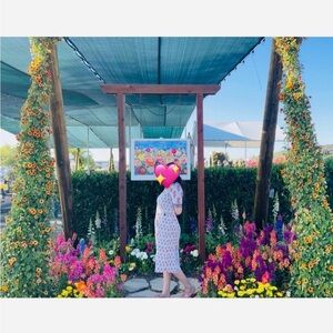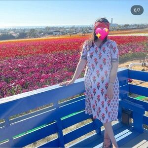 Srishti Floral Cotton Linen Blend Midi Dress S India Floral Print Pink White