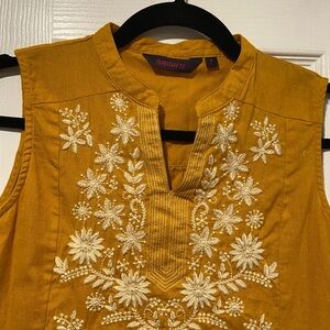 Srishti Size S Mustard Yellow Cotton Blend Pullover Embroidered Sleeveless Top