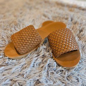 *1 pair woven leather slides. Size 7. Worn, but good condition. Original price $98