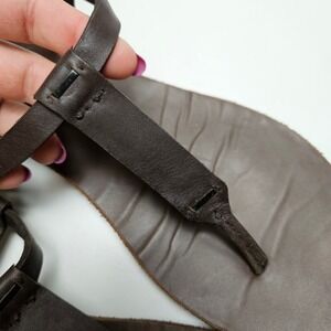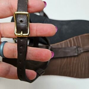 Key features: leather t-strap, ankle buckle strap Condition: creased, wear on the buckle holes women's size sz summer flip flop