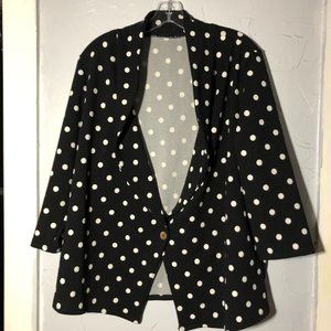 Ssoulm 3XL Black/White Dots One Button Cardigan, 3/4" Sleeve
