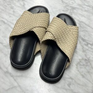 St. Agni Woven Leather Slides in Black and Tan Size 38/US8
