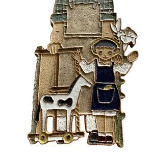 St Andrew's Abbey St Joseph the Worker Religious Wall Plaque Handmade Ceramic Monastic Art features a carpenter with a young child and wooden toy horse on wheels.
