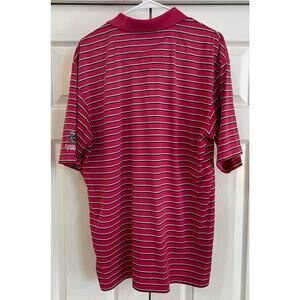 St Andrews Scotland Golf Polo Shirt Men's Medium Pink Green Black Striped Y2K