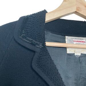 St Andrews Vintage Wool Blazer Womens Sz 10 Black Beaded Embellished Zephyr Wool