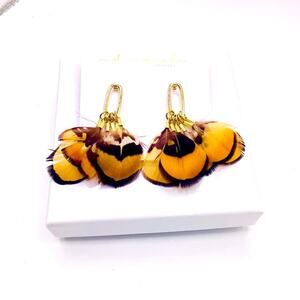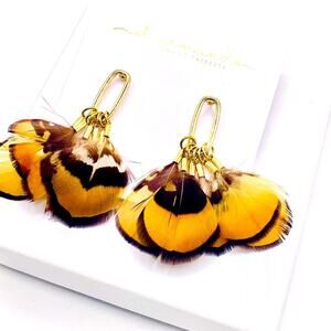 Add a bold touch to your look with these exquisite gold and yellow feather earrings from . Perfect for any occasion.