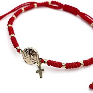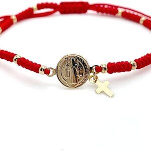 St Benedict Medal Adjustable Red String Bracelet San Benito for Protection