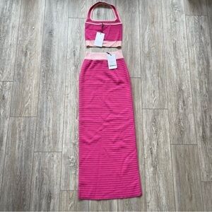 St Cloud NWT Sangria Halter Top & Bahama Maxi Midi Knit Skirt Paradise Pink XS/S
