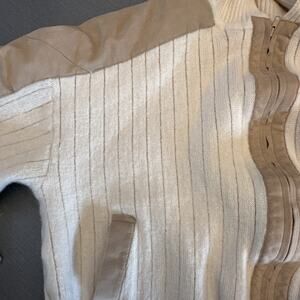 St Croix Jacket Women Medium Beige Tan Full Zip Ribbed Wool Suede Shoulder Trim