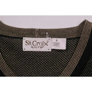 St Croix Knits Black/Gold Knit Woven V-Neck Sweater Men's Medium