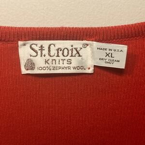 St. Croix Knits VTG Sweater Red Men V Neck Zephyr Wool Pullover Holiday XL