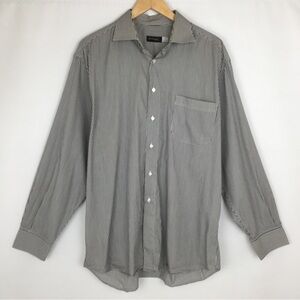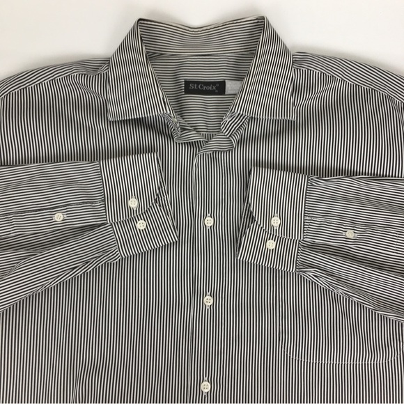 St. Croix Men Button Down Shirt Long Sleeve Black White Stripes Made In Italy XL