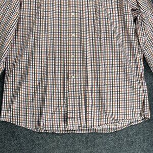 St Croix Shirt Mens Large Button Up Orange Purple Plaid Cotton Long Sleeve