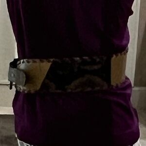 This belt has a rustic, textured, and slightly bohemian feel to it.