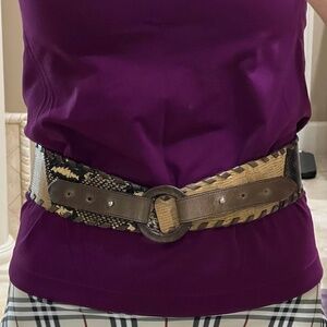 Material & Finish: Snakeskin with earthy tones of beige, brown, and black. The texture gives it a natural, exotic look.