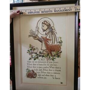 St Francis Of Assisi Embroidered Large Portrait Fawn Animals Quote Framed Matted