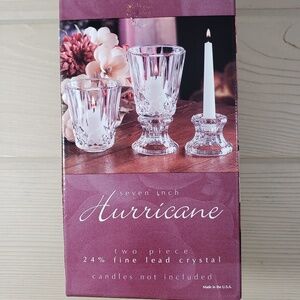 You are looking at a St. George seven inch two piece hurricane. The piece is 24% fine lead crystal. Candle is not included. Made in the USA. Beautiful piece!