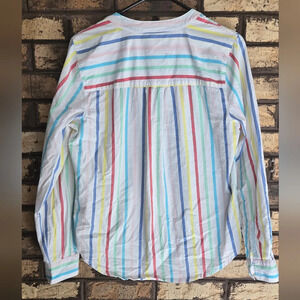 St. JOHNS pastel striped collarless button down long sleeve shirt