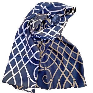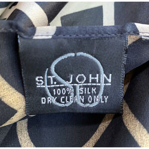 St. John designer 100% Silk Scarf - a classic look done in black, cream & gold pattern. Clearly tagged - dry clean only. This long rectangle scarf is the height of luxury - an elegant accessory that is reversible for a variety of looks. In excellent condition - gently worn - no flaws - just stunning!
