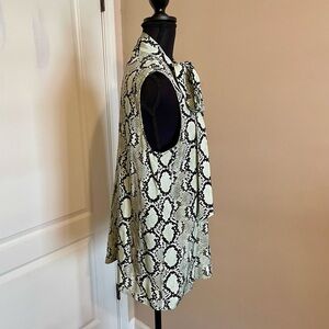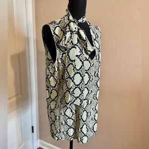 St. John 100% Silk Top Blouse M/L Mint Python Snake Print Neck Tie Bow Classy
