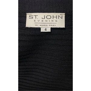 ST. JOHN 1980s Long Sleeve Padded Shoulder Crystal Button Down Closure Knit Paillette Sequin Jacket Mid Length Skirt Set Made In USA