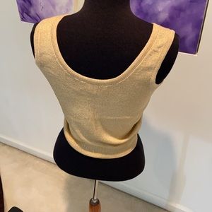 Shimmering knit. Gold metallic sleeveless shell. Tank styled. Stretchable & EUC condition. Fits like a small comfortably.