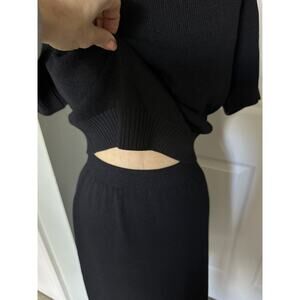 St John Basics Black Santana Knit Crew Neck Top Knee Length Pencil Skirt Set 12