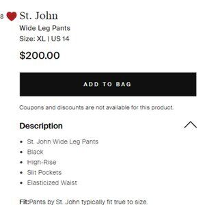 Chic black knit piece from St. John Basics. Perfect for versatile styling. 15 inch across waist (but very stretchy) and 29 inseam.