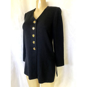 St John Basics Blazer Jacket Cardigan Santana Knit Long Sleeve Black V N…