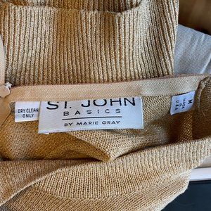 St John Basics Metallic Gold Knit Waist Length Short Sleeve Sweater Size M