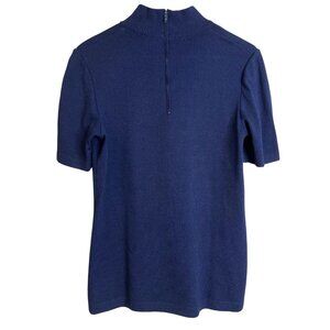 St. John Basics Midnight Blue Mock Neck Short Sleeve Sweater Small Santana Knit