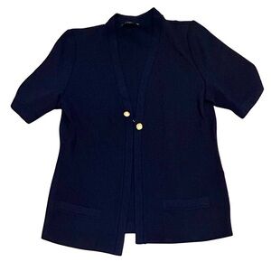 St. John Basics Navy Short Sleeve Knit Jacket - Size L