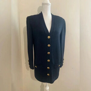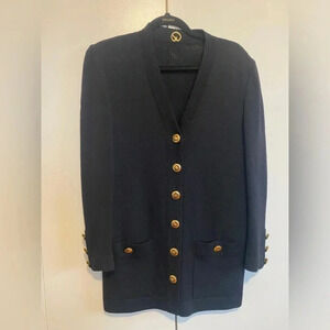Beautiful Jacket or can be worn as a long Cardigan by St. John. Diamond gold rivet buttons with St. John Insignia on both. Superior quality mint that can be worn from day to night and will last a lifetime.