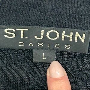 St. John Basics Short Sleeve Knit Cardigan | Size L | Black Gold Button Front